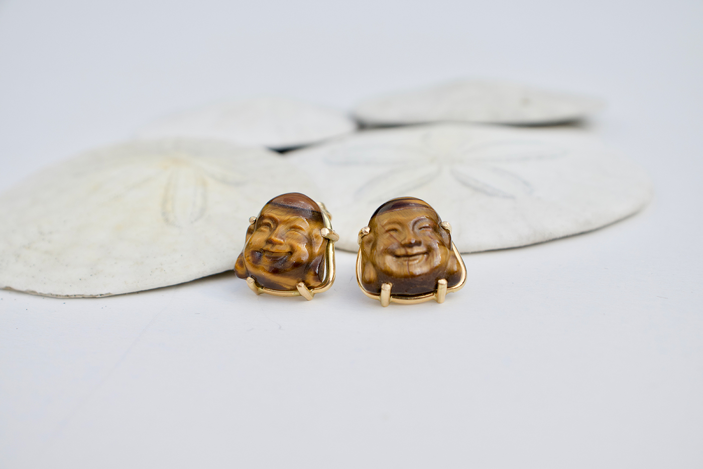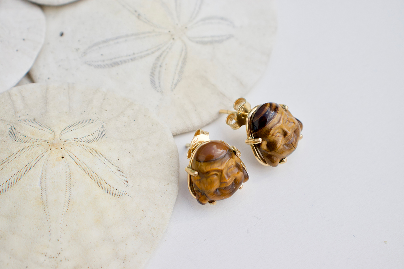 Boucles d'oreilles en or jaune 18 carat et buddha œil de tigre
