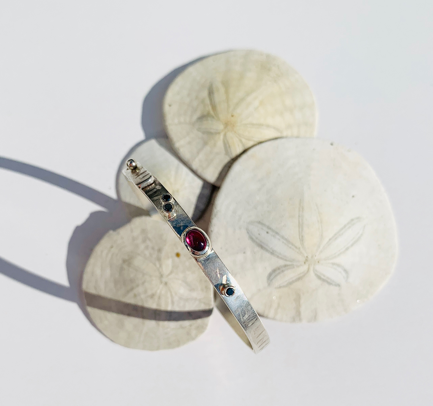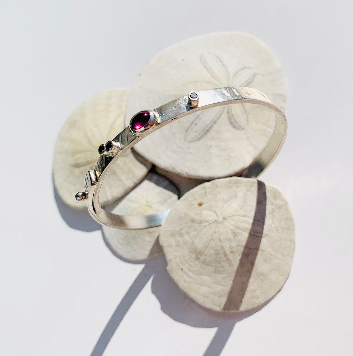 Bracelet argent avec diamants noirs et tourmaline, gravure main